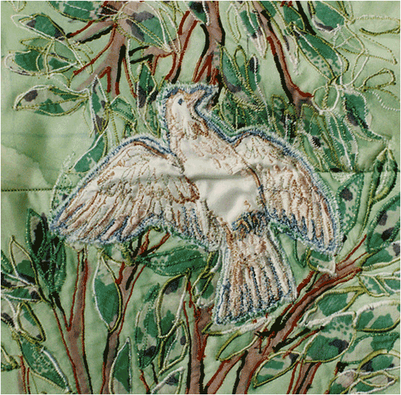 Machine embroidery on hand painted silk mounted on pure cream coloured wool.