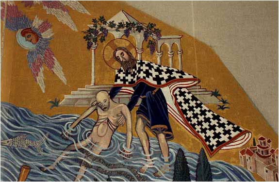 Painted stage of design yet to be stitched. Depicting 'The Healing of the paralytic' - John 5.ii