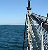 beneath the green mountain peaks, seemingly swaying in the clouds